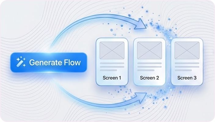 Stop designing screen by screen. Flow Mode generates your entire UI flow from one prompt.