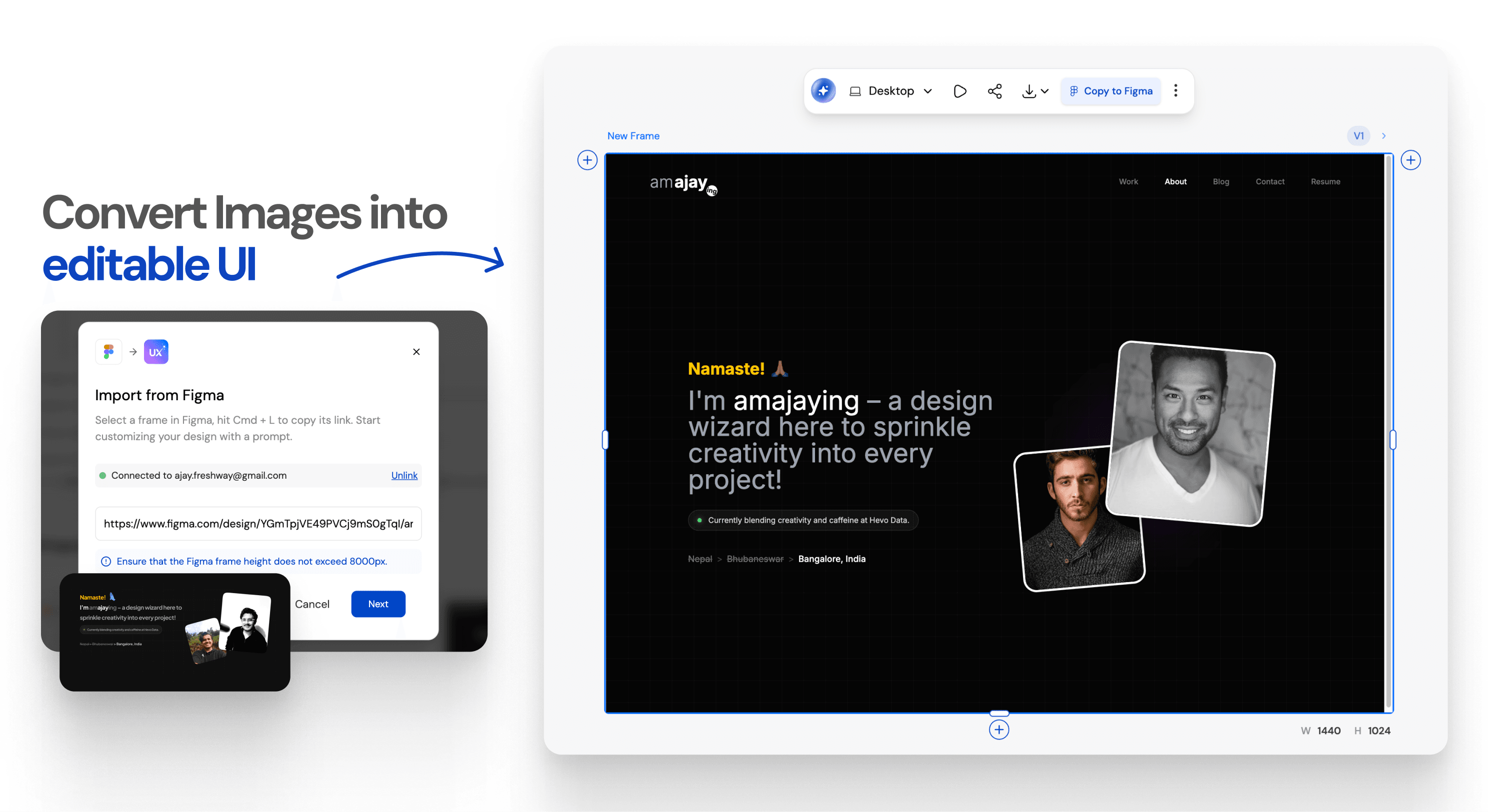 Imported in 30 seconds. Fully editable in Figma & exportable to HTML/React